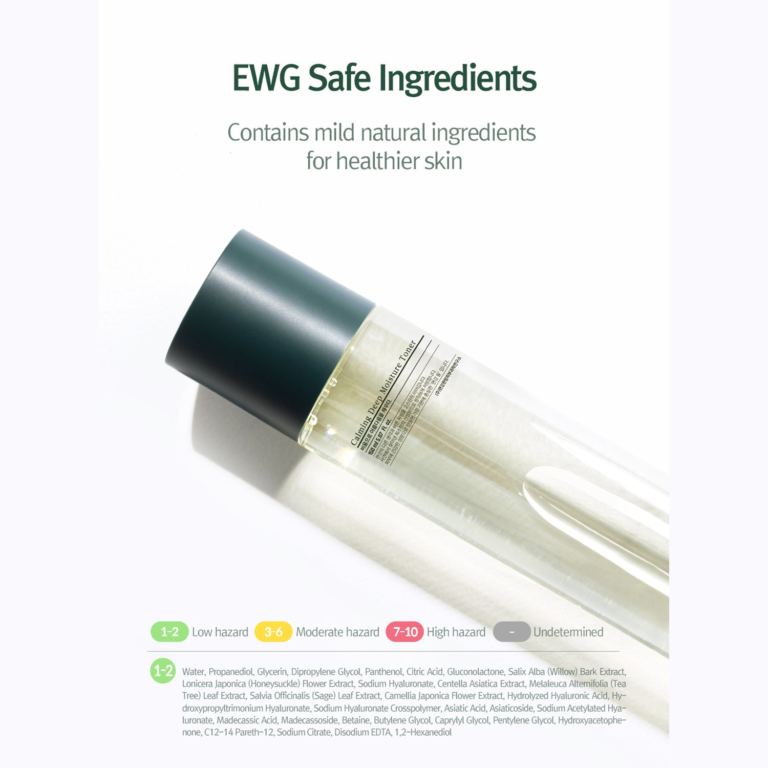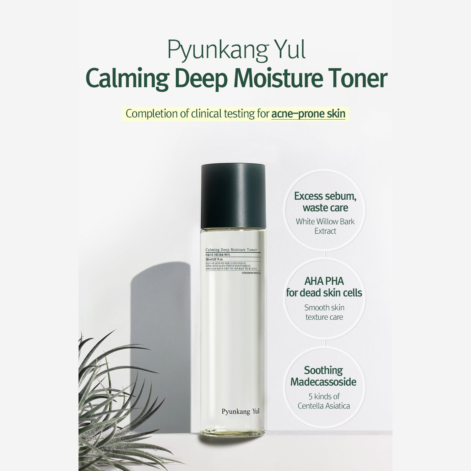 The Calming Deep Moisture Toner is a clinically tested toner designed to soothe acne-prone skin, reduce sebum, and improve skin texture. Human application tests have verified its effectiveness in reducing pore size, oil, sebum, and blackheads, while gently smoothing the skin's texture. This toner has a healthy low pH formulation, is certified zero-irritation, and contains only EWG-safe vegan ingredients. It is recommended for acne-prone, sensitive, and reddened skin types, and works best when used with Pyunkang Yul Calming Serum and Calming Cream for enhanced calming effects and deeper moisture. Key ingredients include five soothing extracts from Centella Asiatica, which provide quick relief to the skin and control excessive sebum for a smooth texture. The watery and fresh formula effectively provides deep moisture without stickiness. To use, apply the toner on a cotton pad and gently sweep along the skin texture. For more soothing, wet a cotton pad and use it as a skin pack.