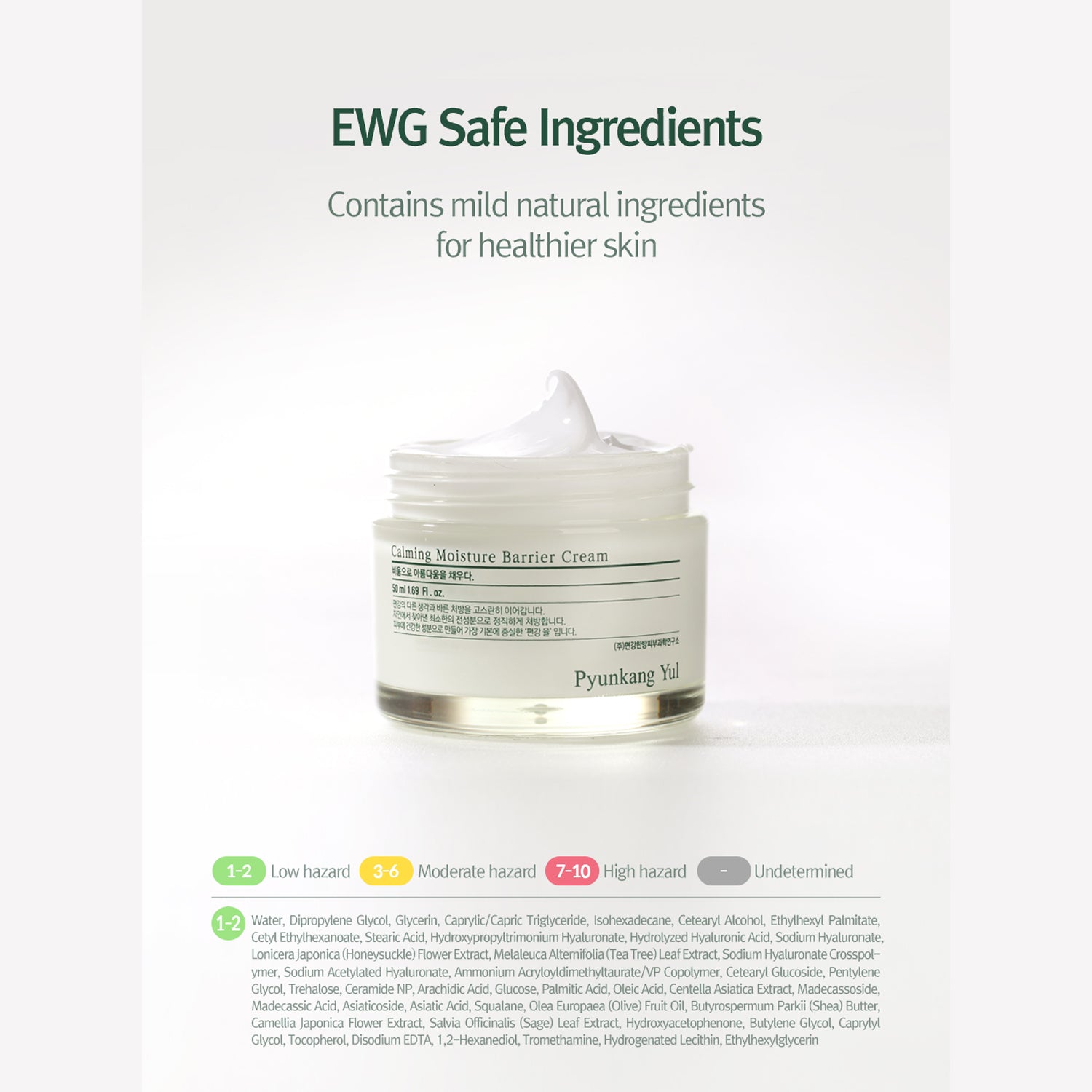 The Pyunkang Yul Calming Moisture Barrier Cream is a soothing and protective solution for sensitive, irritated skin, formulated with Centella Asiatica Extract, Tea Tree Extract, and Lonicera Japonica Flower Extract to calm and reduce inflammation. It strengthens the skin’s moisture barrier with the help of Ceramide, ensuring long-lasting hydration and protection against moisture loss. Enriched with Panthenol, 5 Hyaluronic Acids, Squalene, and Shea Butter, this cream provides deep, nourishing hydration, leaving the skin plump, smooth, and healthy. Designed with EWG safe ingredients, it’s ideal for sensitive skin, offering both safety and efficacy without irritation.